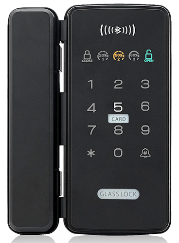 玻璃门指纹锁IC PVC外壳-半导体 指纹容量200 卡片240 密码240 遥控选配 蓝牙小程序 考勤 电源供应4.5V-6.5V(即4节干电池) 安装简单,性能稳定,性价比高 玻璃门,木门,有框,无框门适用