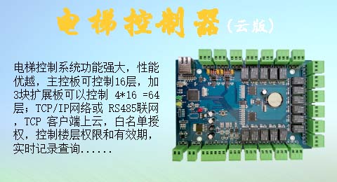 | 主控可以控制16层,加3块扩展板可以控制4*16=64层,梯控系统功能强大,性能优越;通讯方式:RS485联网,或TCP网络,电脑管理,联网使用,白名单授权,控制楼层和有效期,实时记录查询...... |